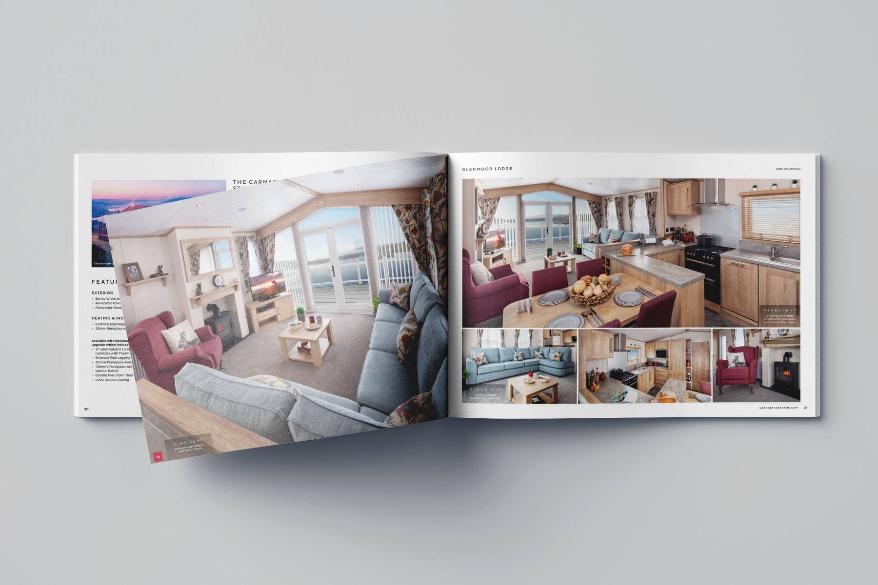 Using our extensive experience in the Holiday Home and Leisure market place the Umber Creative team worked quickly to establish some time on site, working with their chosen photography partner to art direct the product photography. We quickly identified that the amazing photography taken was not being treated correctly through re-touching at post production and into print, we knew that making many small changes here would pay dividends later in the production of the marketing collateral. Working closely with the marketing manager we built a style that carried perfectly online and in print. We have introduced simple but effective standards to Carnaby over our time working with them, ensuring best value through the process of getting collateral ready for a new product cycle. Our relationship has gone from strength to strength since 2013 and we have increased our support to Carnaby Caravans across all of their marketing and through their exhibition seasons.