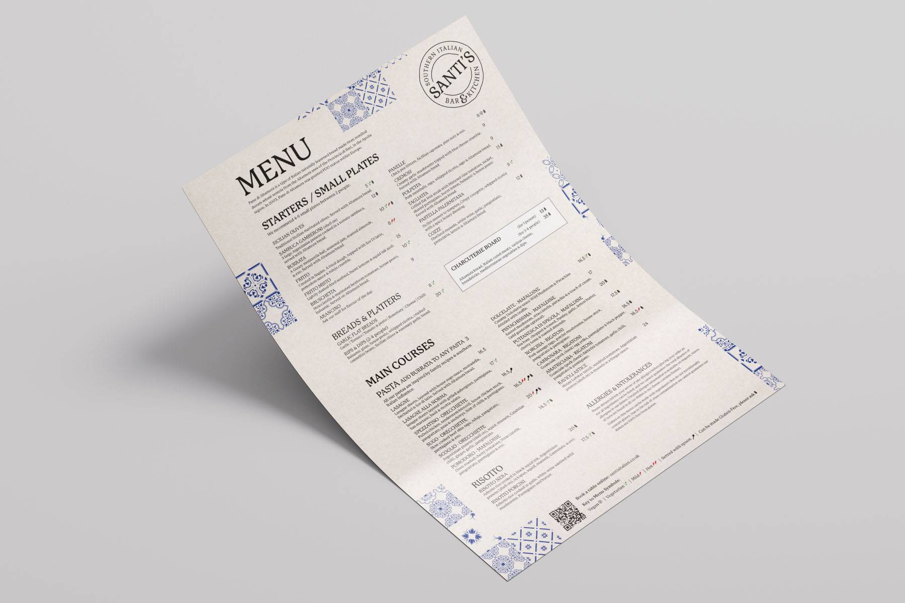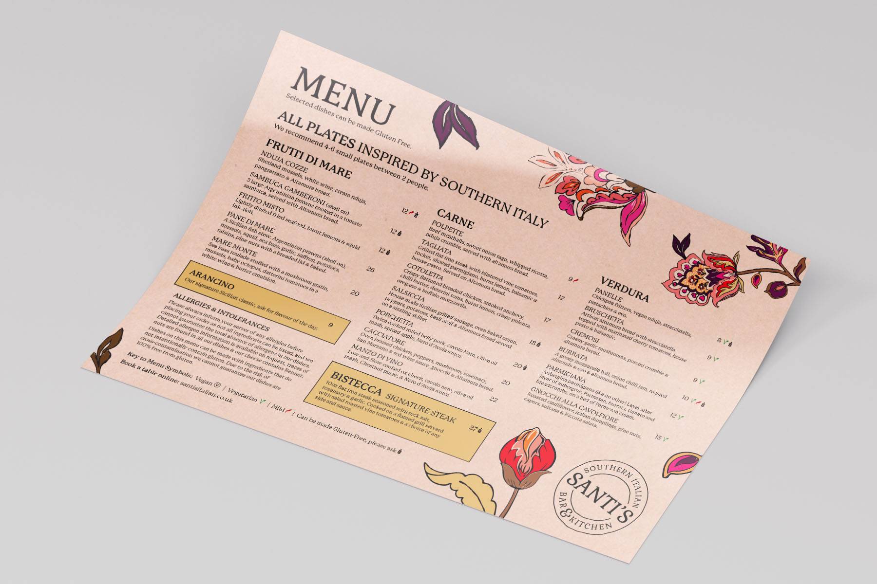 The Santi’s team came to us with the idea of opening a restaurant, they needed a creative partner to help kickstart their project. With the team's links to Southern Italy, it was important to pay homage and accurately represent their culture.